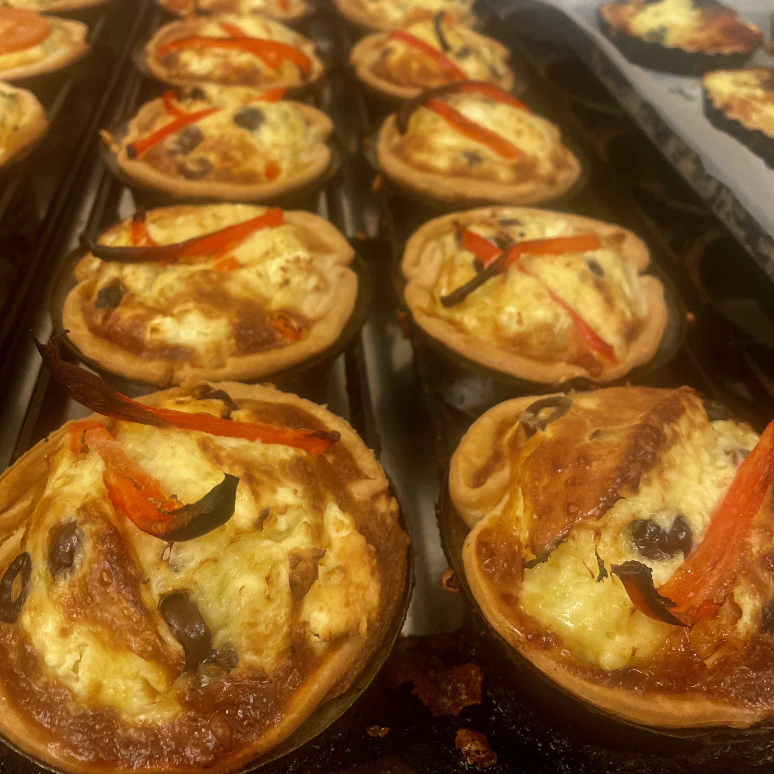 Red capsicum, feta and olives make up our scrumptious Mediterranean quiche.